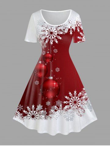 n*****s5Plus Size Christmas Snowflake Ball Print A Line DressColor: DEEP RED Size: L | US 12Absolutely love this dress. Got matching dresses for me and both my daughters and really glad I did