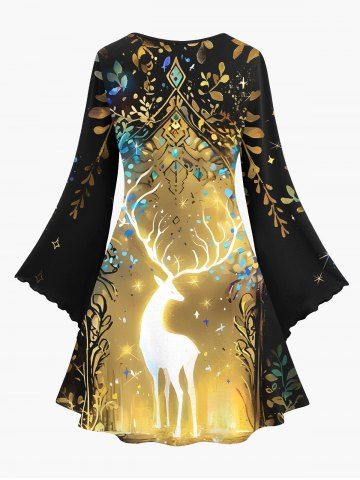 Glitter Christmas Elk Branch Leaf Print Plus Size Matching Outfit For Couples - Multi-a