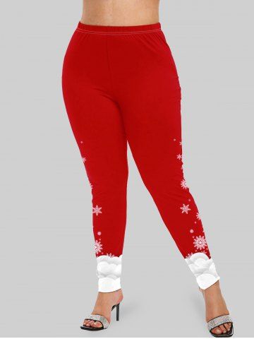 K*****e4Plus Size Christmas Snowflake Printed Two Tone LeggingsColor: RED Size: 4X | US 26-28good quality. ordered a size larger than normal and they were too big