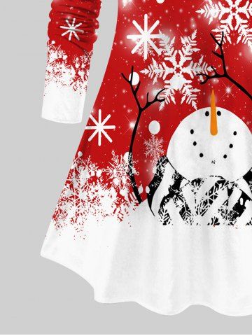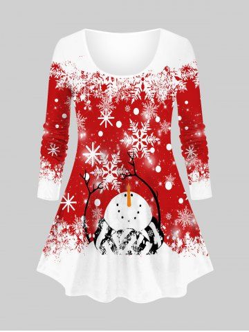 Plus Size Christmas Snowflake Snowman Tree Branch Elk Print Plus Size Matching Set - Red - Xs