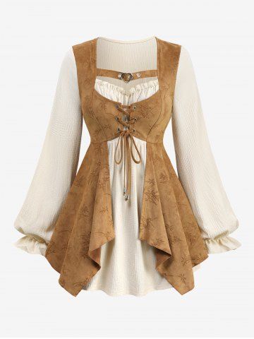 b*****p5Plus Size Bamboo Print Lace Up Ruched Ruffles Heart Buckle Grommets Plisse 2 In 1 TopColor: BEIGE Size: 2X | US 18-20These shirts are beautiful. They fit the way they are supposed to and they flow beautifully.