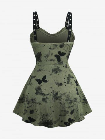 K*****e5Plus Size Butterfly Ink Painting Print Surplice Ruched Ruffles Grommets Straps Ribbed Textured Tank TopColor: GREEN Size: 4X | US 26-28This is a very nice shirt. Very soft material. It looks cute on without being too much. I'm very glad I got it.