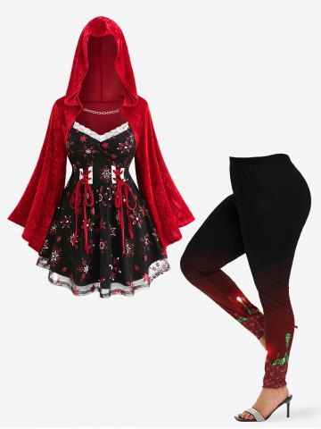 J*****e5Christmas Plus Size Chain Panel Lace-up Lace Trim Ruched Snowflake Print Hooded T-shirtColor: RED Size: L | US 12WEAR ON DATE NIGHT! This will knock his socks off. It's sexy, and he won't be able to take eyes off you. The holiday print just adds to its charm.