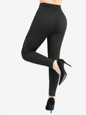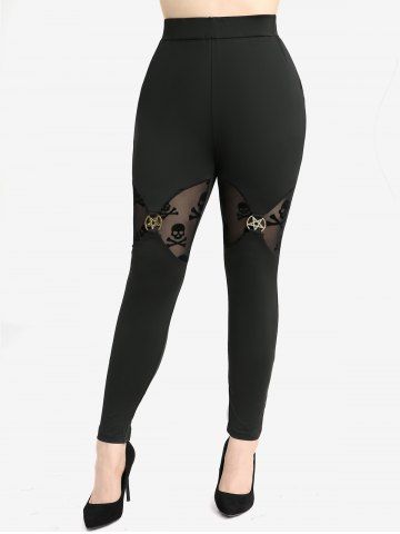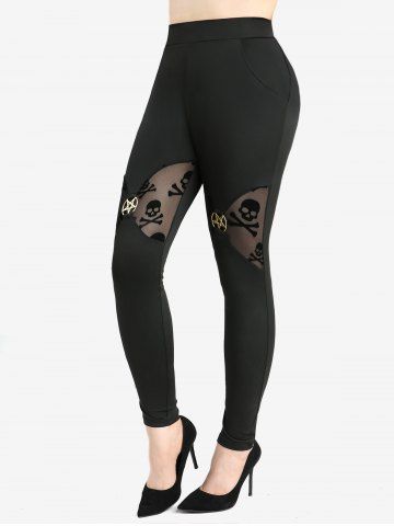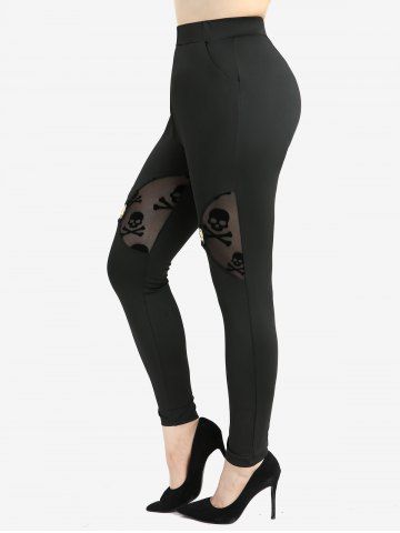 Outfit Bundles > Cold Shoulder Mesh Bell Sleeves Top and Skull Flocking Skinny Leggings Plus Size Outfit