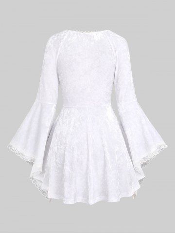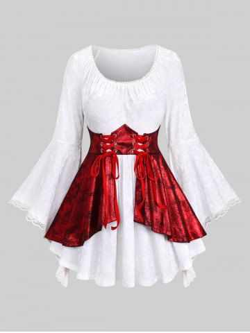 C*****e5Plus Size Flare Sleeve Glitter PU Grinding Panel Lace Up Ruched Velvet T-shirtColor: WHITE Size: 3X | US 22-24A. Perfect
