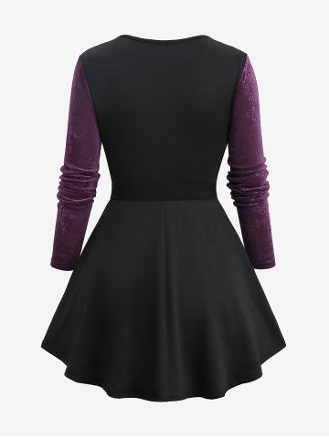 s*****n5Plus Size Floral Embossed Ruched Surplice Long Sleeves Top with Removable Chain BeltColor: PURPLE Size: 3X | US 22-24The fabric feels soft and stretchy. Perfect fit, well sewn