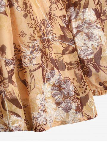 m*****45Plus Size Floral Print Embroidery Ruched Surplice 2 in 1 Long Sleeves BlouseColor: LIGHT COFFEE Size: 1X | US 14-16Received this light weight beautifully made long sleeved, V-Neck ladies plus size top. Very lovely made, excellant quality and material is comfortable against my skin. Fits me perfectly, true to size. This top will look terrific either dressed up or even wearing a pair of jeans. Well worth the purchase. Thanks Rosegal.