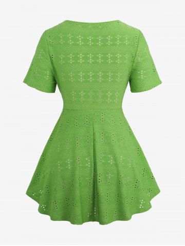 s*****h5Plus Size Heart Chain Panel Ruffles Surplice Broderie Anglaise Hollow Out TopColor: GREEN Size: 2X | US 18-20love colour and love the design