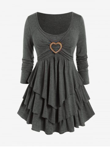 R*****r5Plus Size Valentine's Day Heart Ring Layered Long Sleeves T ShirtColor: GRAY Size: L | US 12I absolutely love this item. It is extremely flattering and fits very well. I have absolutely no complaints, other than I hope it comes in more colors at some point or something very similar is made. The Ruffles are just enough to hide the bit of belly that makes me self-conscious.