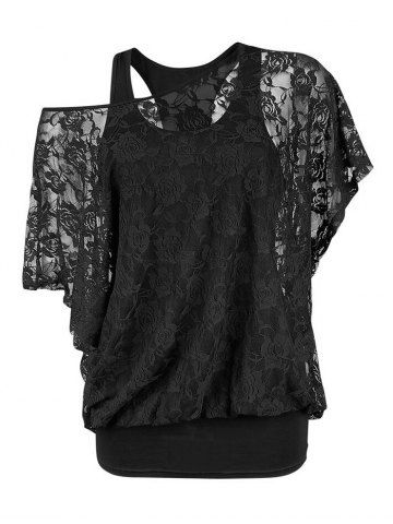 s*****l5Plus Size Skew Neck Sheer Lace Blouse and Racerback Tank TopColor: BLACK Size: L | US 12It’s beautiful and it works with any colored tank-top or crop-top! It’s good for fancy occasion birthday parties and other functions. And I chose a L. I weigh 170 and it fits just fine. Do you boo🥰