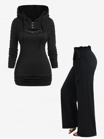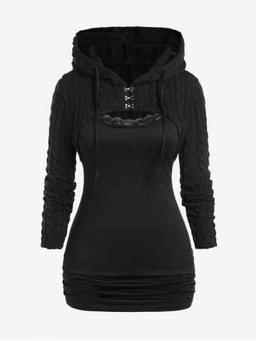 N*****y5Plus Size Lace Trim Ruched Camisole and Hooded Cable Knit Hook and Eye Shrug Top SetColor: DEEP RED Size: 5X | US 30-32I bought this for the hoodie part more than the shirt. The shirt was a little thin and I gave it away. I love the hoodie though. It is so cute and comfortable. It is fun to pair it with different outfits as well.