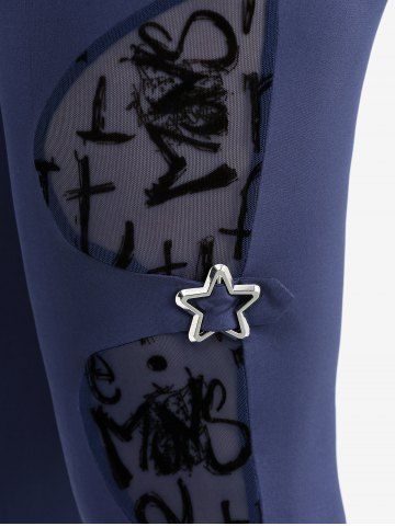 f*****54Plus Size Letter Flocking Mesh Star Buckle Pocket LeggingsColor: DEEP BLUE Size: 3X | US 22-24love it, fits great, true to size, very comfy