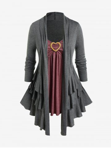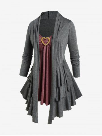 S*****h5Plus Size Draped Cowl Front Two Tone 2 in 1 Tee and High Rise Pencil Jeans OutfitColor: 黑色I love all the clothes I get from here, They always fit perfect and are great quality.