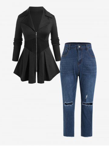 S*****n5Plus Size Ribbed Panel Zipper Fly Turn Down Collar JacketColor: BLACK Size: M | US 10I love this jacket so much that have bought it 3 times just to make sure I always have one. I love the length and how it is snug right under the chest area, very flattering.