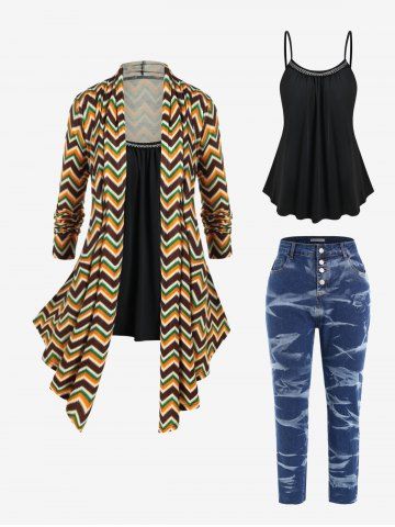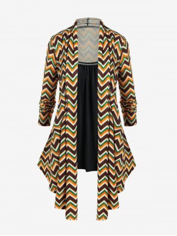 l*****i4Zigzag Asymmetric Cardigan and Camisole Set and High Rise Cutout Twist Leggings Plus Size Outerwear OutfitColor: DEEP YELLOWLove the tops, they fit well and are comfy. The pants seem to be of cheaper quality, some seaming isn't quite complete, they will become an insulating layer for me rather than a wearable everyday item.