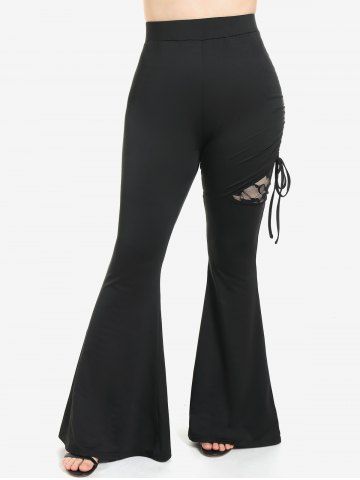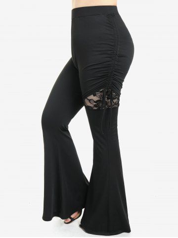 E*****a5Plus Size Lace Panel Cinched Ruched Skinny Pull On Flare PantsColor: BLACK Size: 1X | US 14-16they are cute and comfy I just step all over them lol