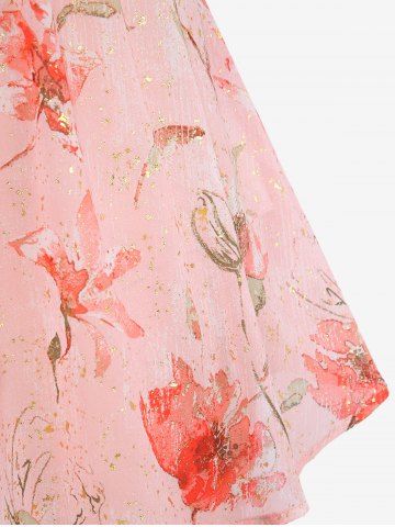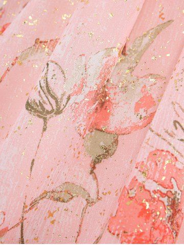 Ruched Hot Stamping Flowers Chiffon Cami Top With Textured Crop Top and Appliques Lace Leggings Plus Size Outfit - Light Pink