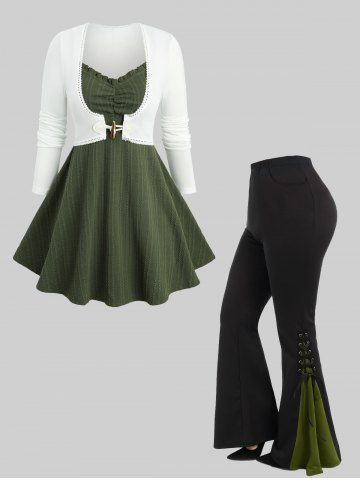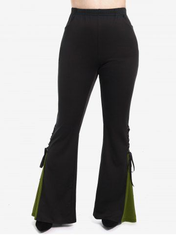 j*****n5Gothic Lace Up Two Tone Godet Hem Pull On Flare PantsColor: BLACK Size: 2X | US 18-20they're a little long on me but I'm sure it'll be great with a pair of boots, but other than that I'm satisfied and they are beautiful.