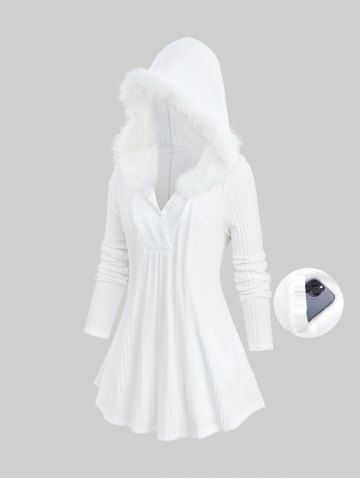 p*****d5Plus Size Solid Color Ribbed Textured Surplice Fleece Trim Hooded TopColor: WHITE Size: M | US 10I love it. many compliments ntrue to size