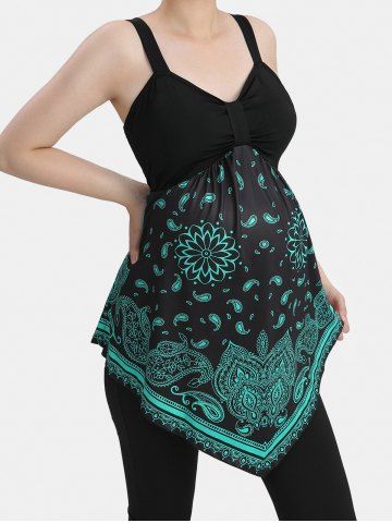 Plus Size Paisley Floral Print Asymmetrical Maternity Tank Top - Deep Green - L | Us 12