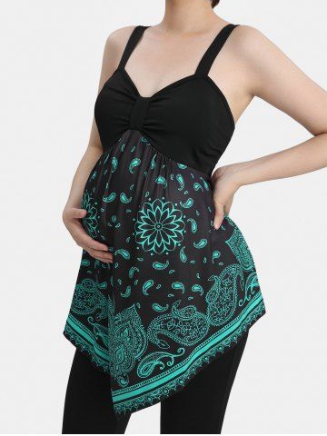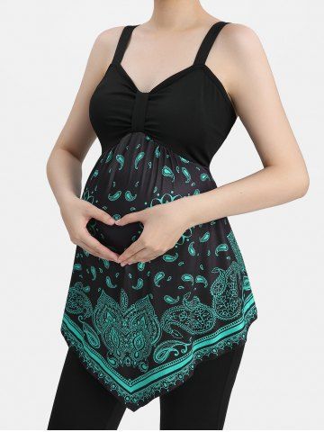 Maternity Tops > Plus Size Paisley Floral Print Asymmetrical Maternity Tank Top