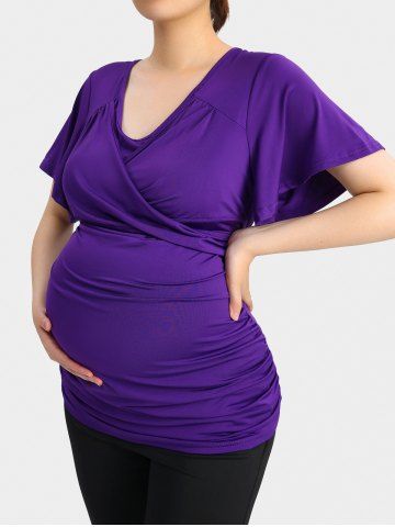 Plus Size Surplice Solid Ruched Maternity Top - Purple - 4x | Us 26-28