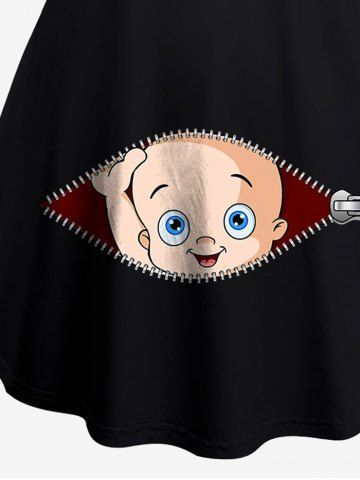 Plus Size Zipper Split Baby 3D Print Maternity T-shirt - Black - L