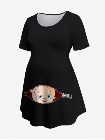 Plus Size Zipper Split Baby 3D Print Maternity T-shirt - Black - 5x