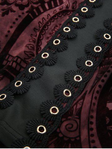 Flower Paisley Flocking Tie Dye Print Mesh Grommets Lace-up Ruchd Lace Trim Tank Dress - Red - Xl