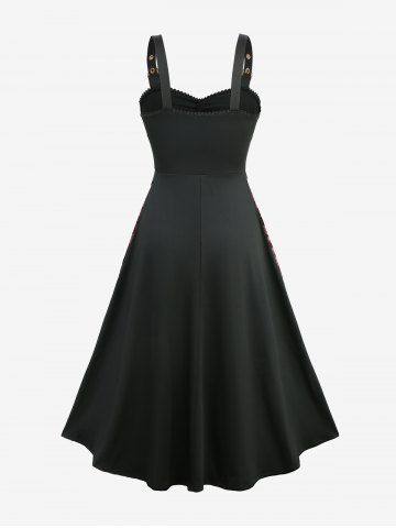 Flower Paisley Flocking Tie Dye Print Mesh Grommets Lace-up Ruchd Lace Trim Tank Dress - Red - Xxl