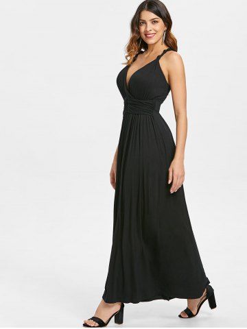 Racerback Plunging Neckline Maxi Dress - Black - L
