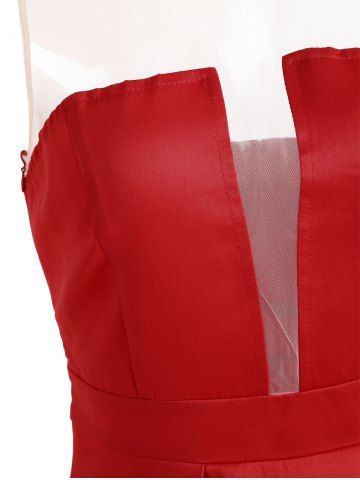 Sheer Mesh Maxi Evening Dress - Red - Xl