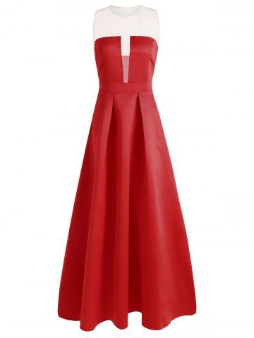 Sheer Mesh Maxi Evening Dress - Red - 2xl