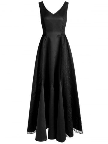 V Neck Maxi Party Dress - Black - S