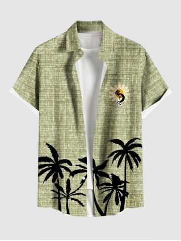 Plus Size Coconut Tree Tropical Leaf Print Buttons Pocket Hawaii Shirt For Men - GREEN - 5XL