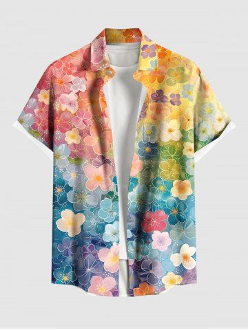 Plus Size Flowers Leaf Ombre Curve Print Buttons Pocket Hawaii Shirt For Men - GRAY - 5XL