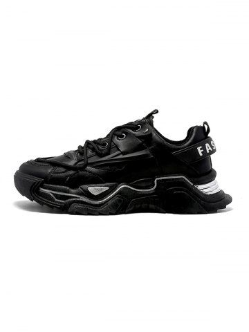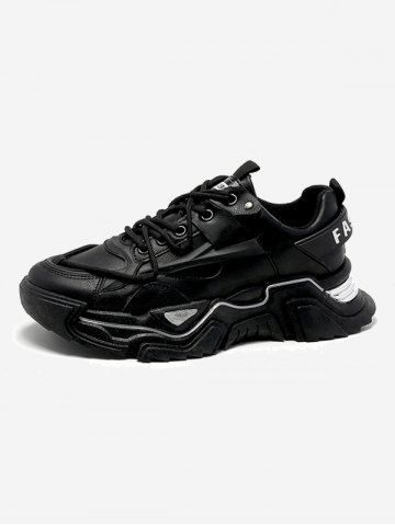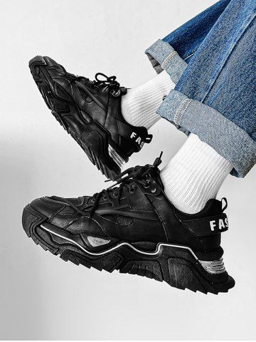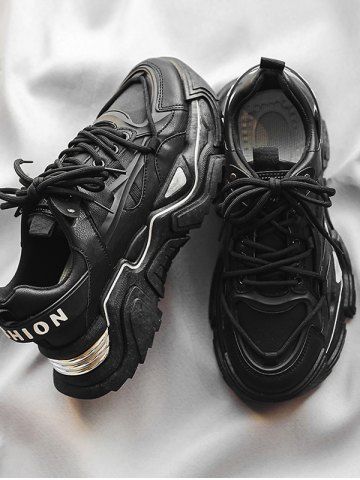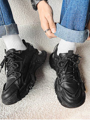 Lace Up Front Thick Bottom Clunky Sneakers - Black - Eu 42
