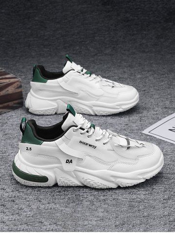 Letter Breathable Mesh Insert Chunky Sneakers - White - Eu 42