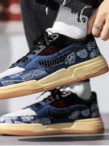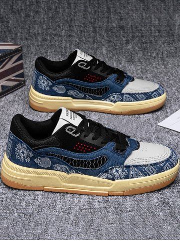 Mixed Media Paisley Floral Print Board Shoes - Silk Blue - Eu 40