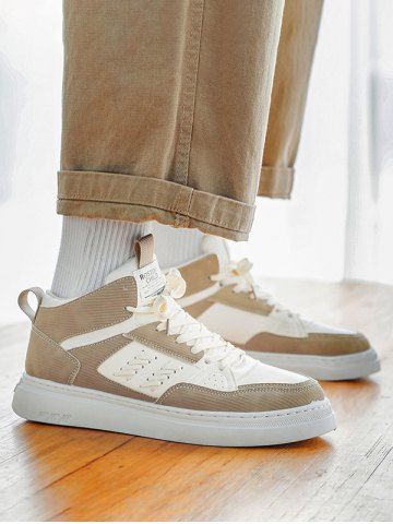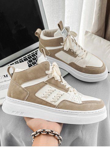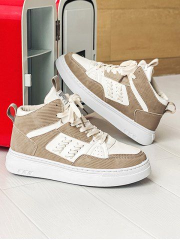 Topstitching Colorblock Lace Up Front High Top Skate Shoes - Deep Brown - Eu 41