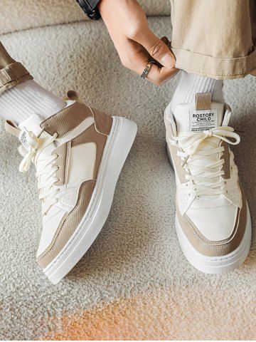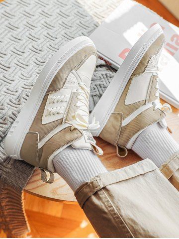 Men's Accessories > Topstitching Colorblock Lace Up Front High Top Skate Shoes