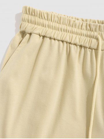 Letter Graphic Printed Striped Panel Sweat Shorts - Light Coffee - L