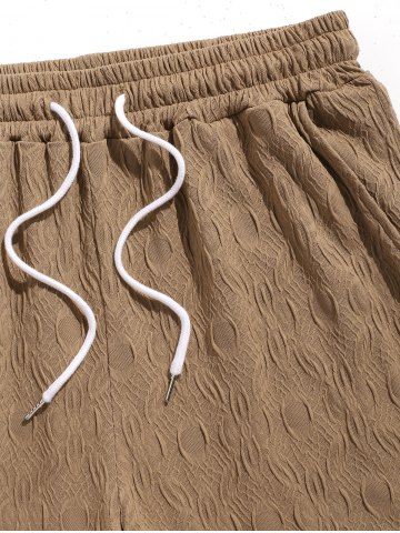 Men's Knitted Jacquard Textured Casual Drawstring Shorts - Deep Coffee - L