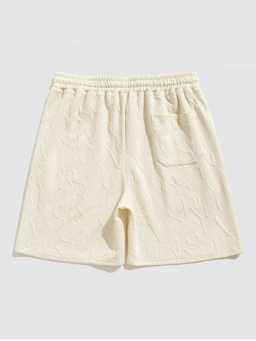 Men's Letter Jacquard Textured Slant Pockets Drawstring Casual Shorts - Champagne - M