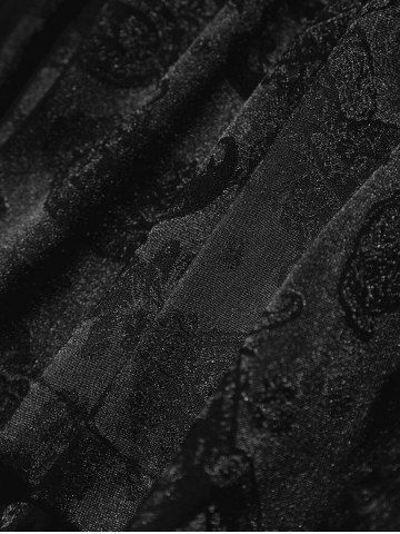 Men's Paisley Floral Jacquard Silky Satin Pockets Drawstring Casual Shorts - Black - Xxl
