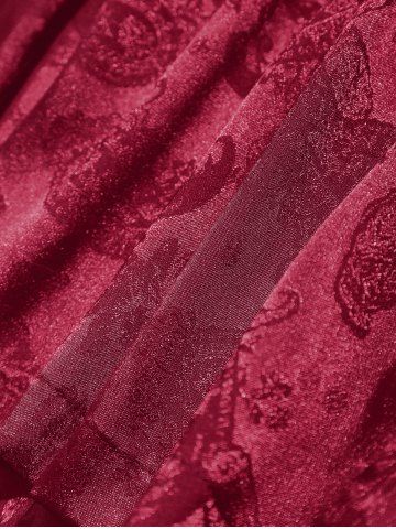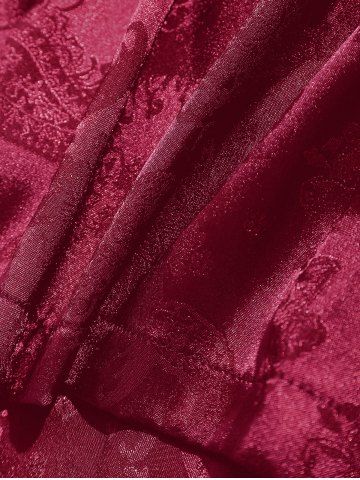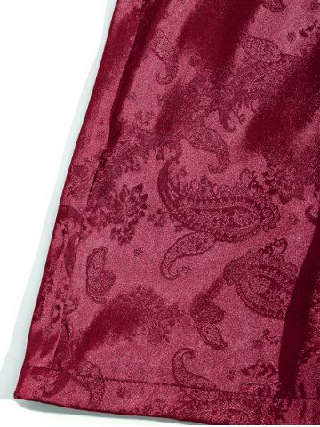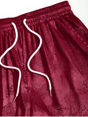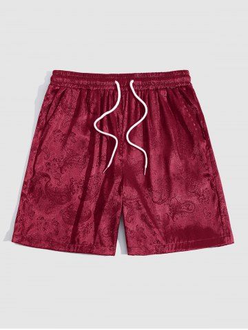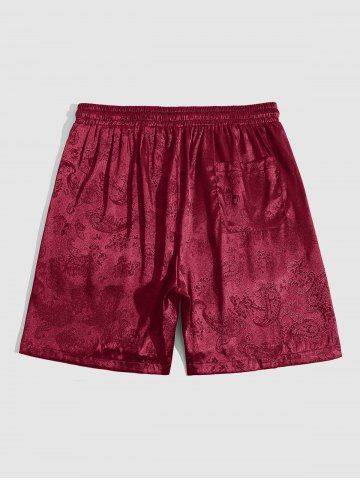 Men's Paisley Floral Jacquard Silky Satin Pockets Drawstring Casual Shorts - Deep Red - Xl