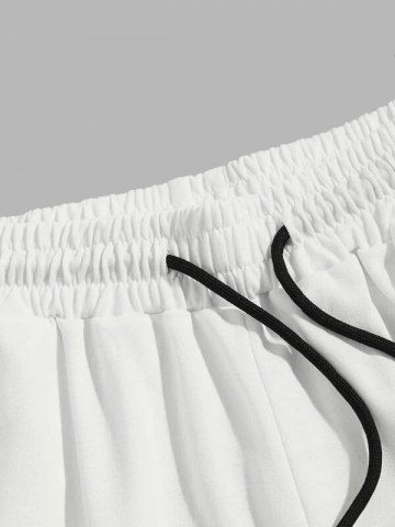 Men's Rose Slogan Printed Casual Drawstring Shorts - White - Xl