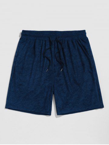 Men's Terry Cloth Toweling Basic Solid Color Drawstring Casual Shorts - Midnight Blue - Xl