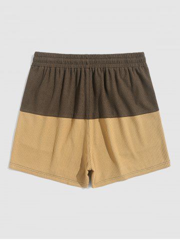 Men's Two Tone Colorblock Ribbed Textured Smile Face Embroidered Drawstring Casual Shorts - Multi-b - Xxl