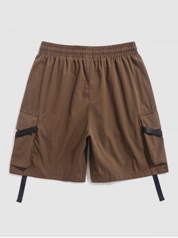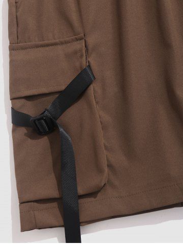 Multi Pocket Braid Belt Design Cargo Shorts - Deep Coffee - Xl